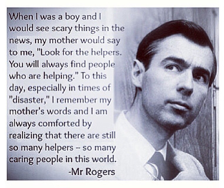 I want to remind people that gratitude is not an absolute feeling. It’s not something that requires that you feel it, and only it. Gratitude is an “and”, not a “but”. There are horrible things happening in the world, “and” I am thankful that most of the people I love are safe and sound. There is a lot of fear and hate floating around, and I am grateful that people are still able to come together under the umbrella of love. The “and” is not trying to eliminate, or even counter, everything that comes before. Gratitude is not about balance — some things are so horrible a simple expression of thankfullness could never even begin to counter them. Gratitude is a practice of opening up all the parts of us that are afraid, sad, and overwhelmed just enough to let some of the good in — and some of the good out. It is the the thing that lets us keep the words of Mr. Rogers in mind: